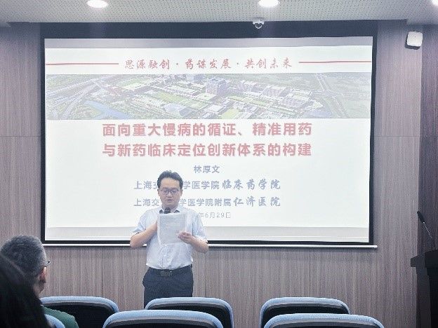 2024年06月29日10时,国家杰出青年基金获得者、上海市科技精英、上海交通大学医学院临床药学院院长、仁济医院药学部主任、上海交大海洋药物融创中心主任林厚文教授应邀来我院进行了参观访问,并于太阳集团官网tyc9728工业中心C座103报告厅为师生们带来了一场跨学科融合的学术报告。本次讲座由9728太阳集团副院长高峰教授主持,我院几十余名师生积极参与了本次学术交流会。