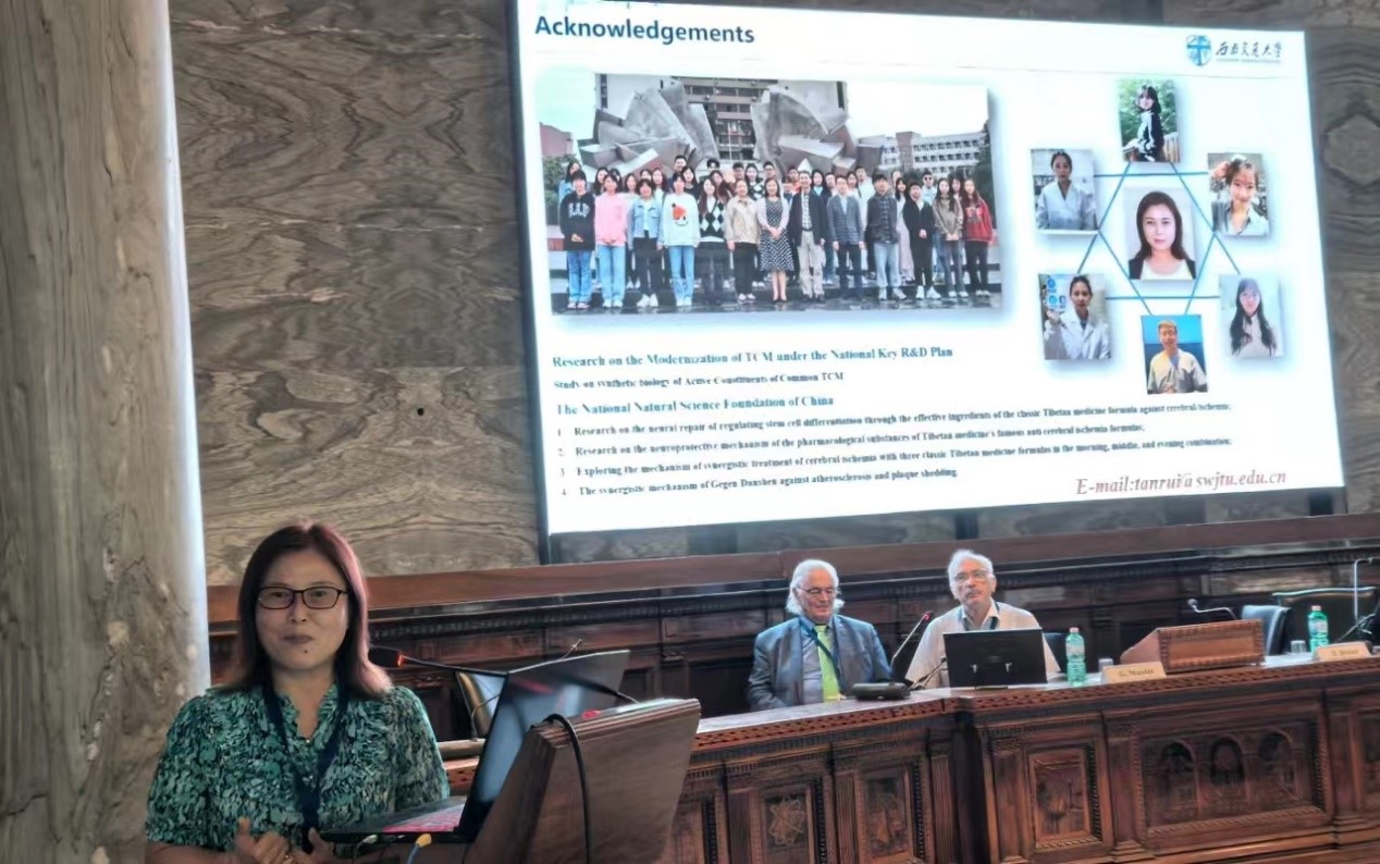2024年9月20日,我院中药(民族药)前沿研究与开发创新团队负责人谭睿教授受邀在意大利召开的世界第25届异戊二烯类天然产物与活性开发会议上进行主题报告,谭睿教授以“Biotechnology-based discovery of active ingredients from traditional Chinese medicine”为题目,向国内外同行展示其所在科研团队的最新研究成果,美国加州大学、德国波恩大学、法国让莫内大学、意大利东皮埃尔大学、日本东京大学、以色列魏茨曼科学研究院,以及西班牙、波兰、捷克等国科学工作者参与大会。
