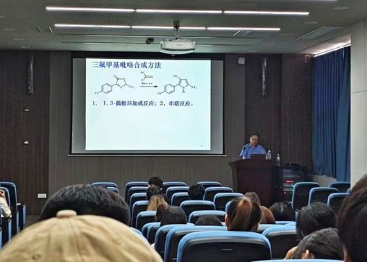 田伟生教授从有机合成化学的基础认知出发,系统阐述了该领域的核心原理与前沿动态。他重点介绍了在甾体化学领域我国第三代学术传承的研究成果,并深入讲解了 “资源化学”学科建立过程及其关键应用,包括天然资源化合物甾体皂甙元反应,以及人工资源化合物氟烷基磺酰氟反应在药物、农药合成中的应用。他提出的“共生反应”概念,为资源化合物的高效利用提供了新思路。此外,他还结合自身经验,分享了研究生培养与科研团队建设的心得,强调理论与实践结合的重要性。