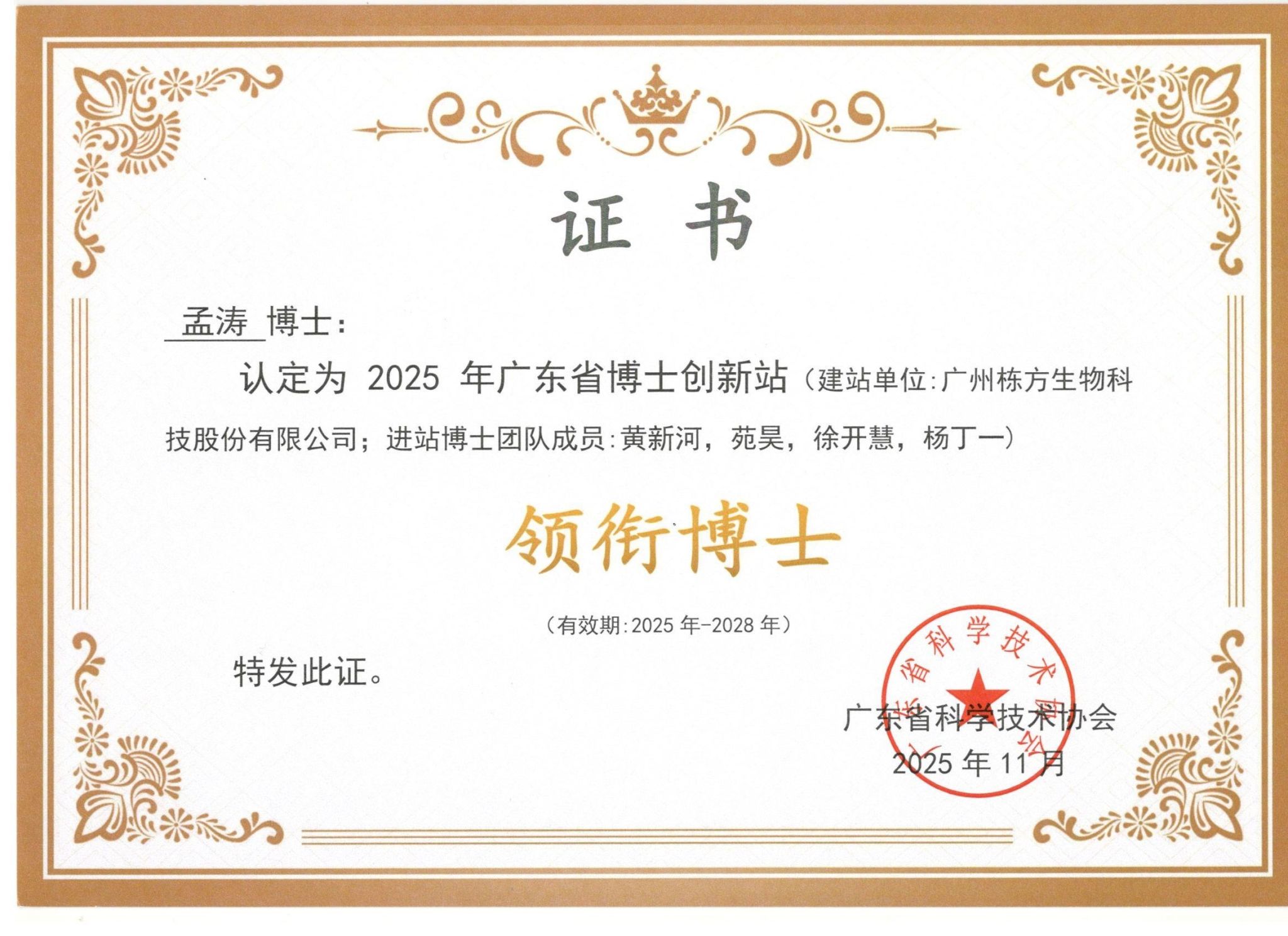 近日,广东省科学技术协会公布2025年度广东省博士创新站立项名单,由9728太阳集团微纳生物技术团队党支部书记、博士生导师孟涛教授领衔,博士团队成员黄新河、苑昊、徐开慧、杨丁一等与广州栋方生物股份有限公司共建的“微纳生物包裹与递送技术研发应用”博士创新站成功获批。这是我院坚持“党建引领、一融双高”,深化产教融合、推动产学研协同育人取得的又一重要成果。