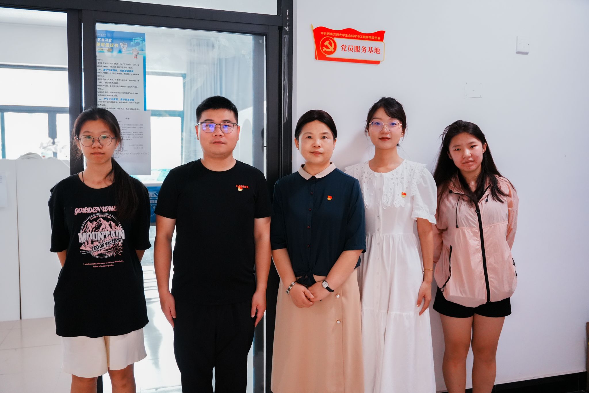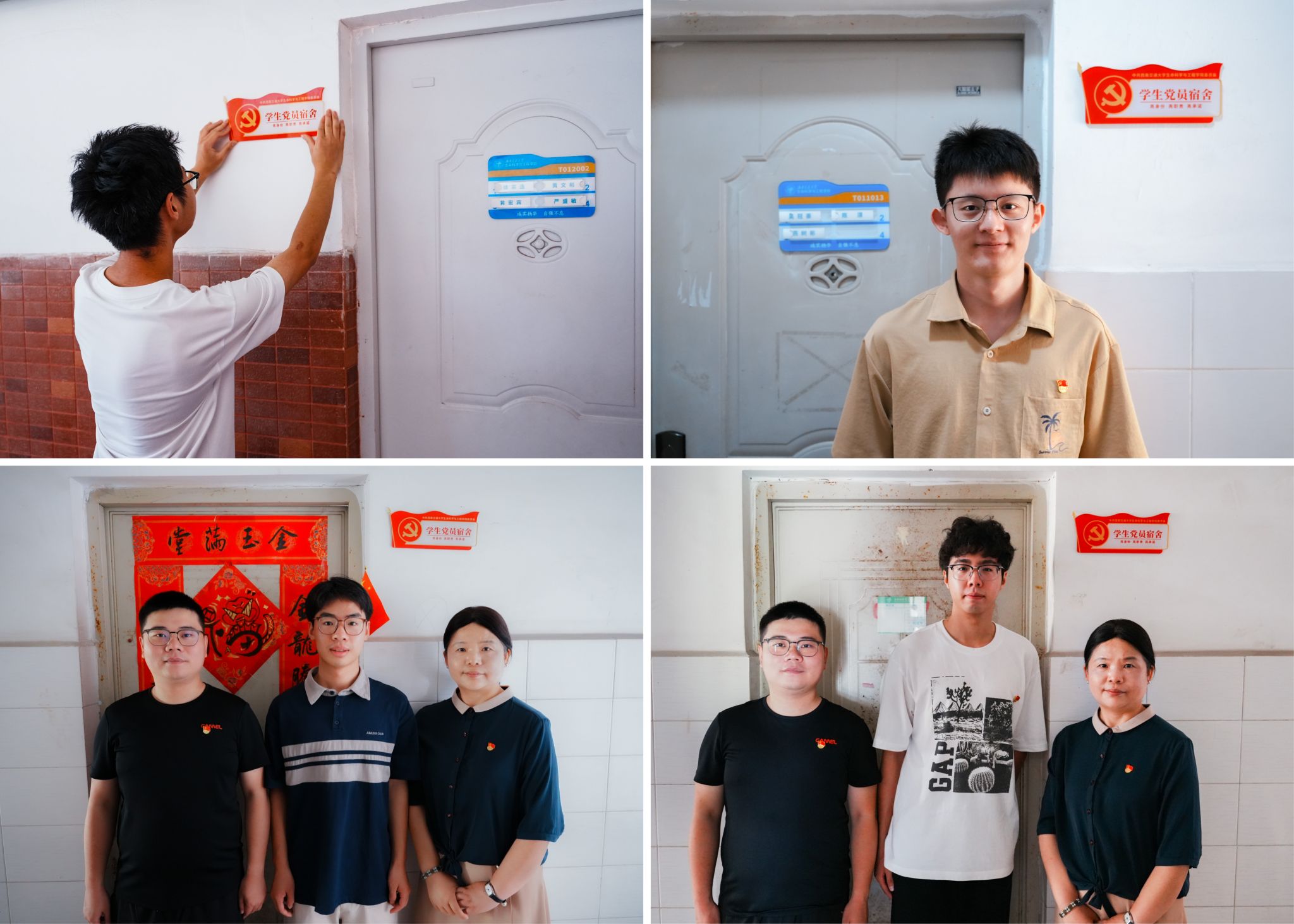 值此中国共产党成立104周年之际,为充分发挥青年党员先锋模范作用,增强党员身份意识与责任担当,切实将党组织政治功能和组织功能延伸至学生生活前沿,7月1日,9728太阳集团党委深入学生宿舍园区,开展学生党员宿舍及党员服务基地挂牌活动,共计挂牌本科生宿舍41间,园区自习室2间。学院党委书记黄春蓉、辅导员代表及学生党员代表共同参与。