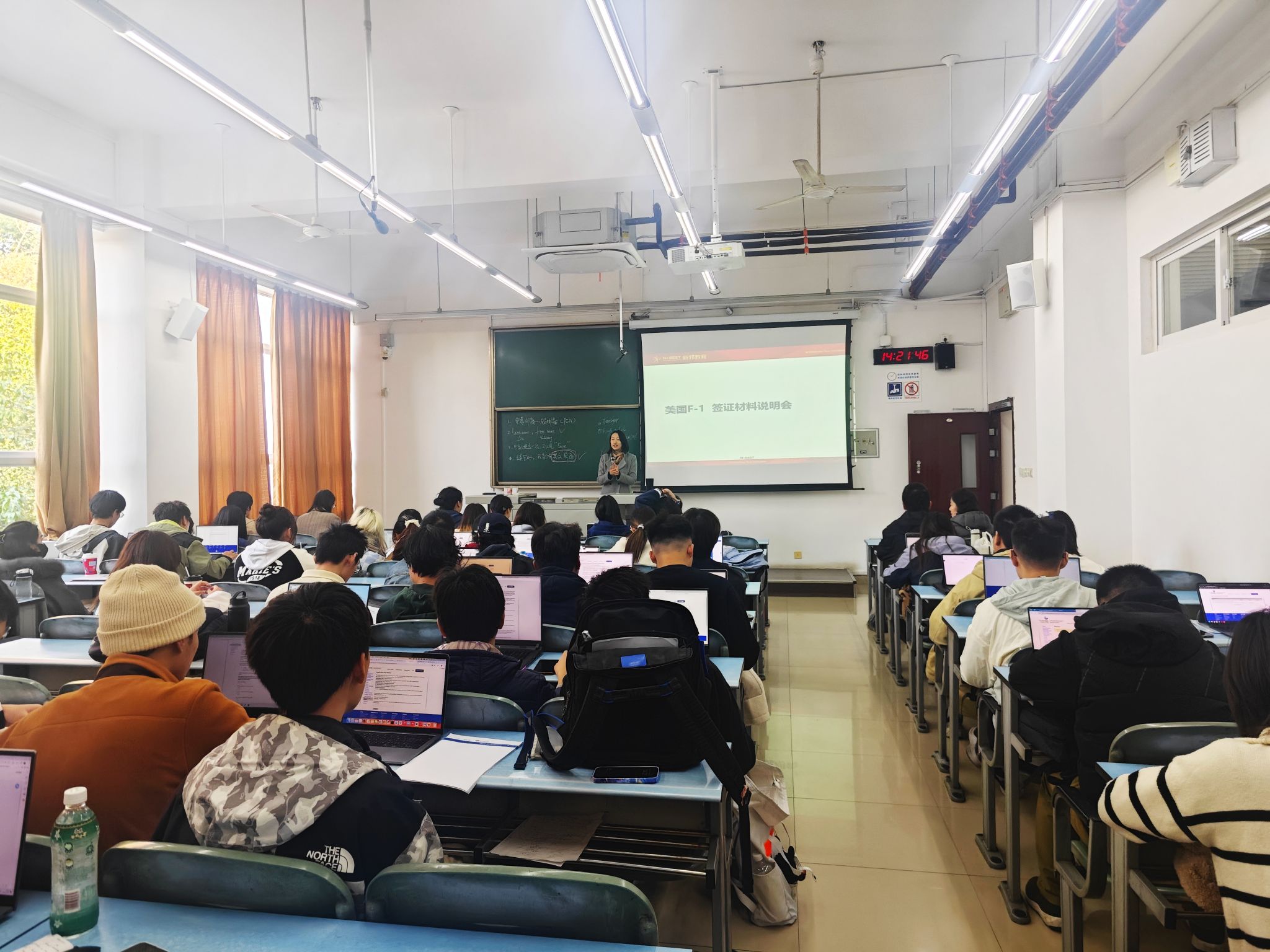 11 月 20 日下午 2 时,生命学院 2023 级中美班首次签证培训工作于 X2323 教室顺利举行。此次培训聚焦即将开展的赴美暑期学校的签证培训,致力于为学生提供全面且必要的签证指导,以保障学生顺利参与暑期学校。