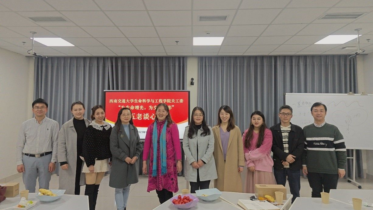 11月23日下午,生命学院党委、关工委、院工会在犀浦校区举办了“为生命增光,为交大添彩”教师工作坊主题活动。学院党委书记李卓慧,党委副书记、纪委书记、工会主席朱炜,副院长李遂焰,院长助理黄新河、华晶晶、王毅及学院部分教师参加本次活动,活动由朱炜副书记主持。