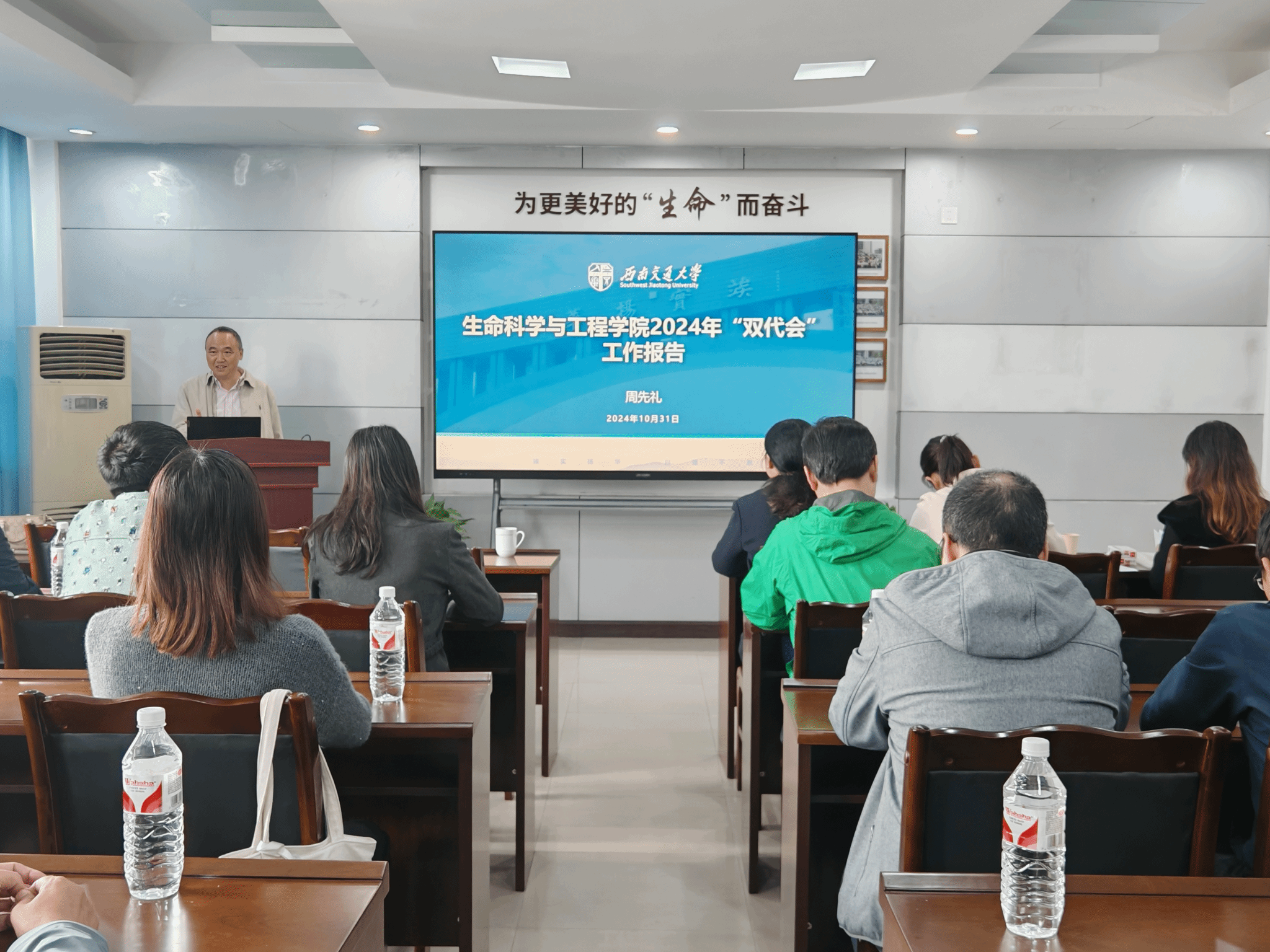 大会在庄严的中华人民共和国国歌声中拉开帷幕。首先,周先礼院长从四个方面向大会作生命学院2024年“双代会”工作报告。