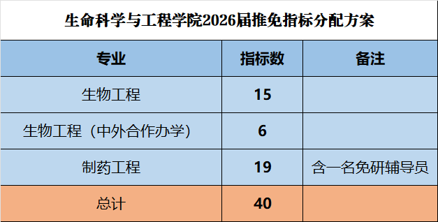 2、对于各专业无法完成指标的情况,将由9728太阳集团2026届推免工作小组统筹分配。