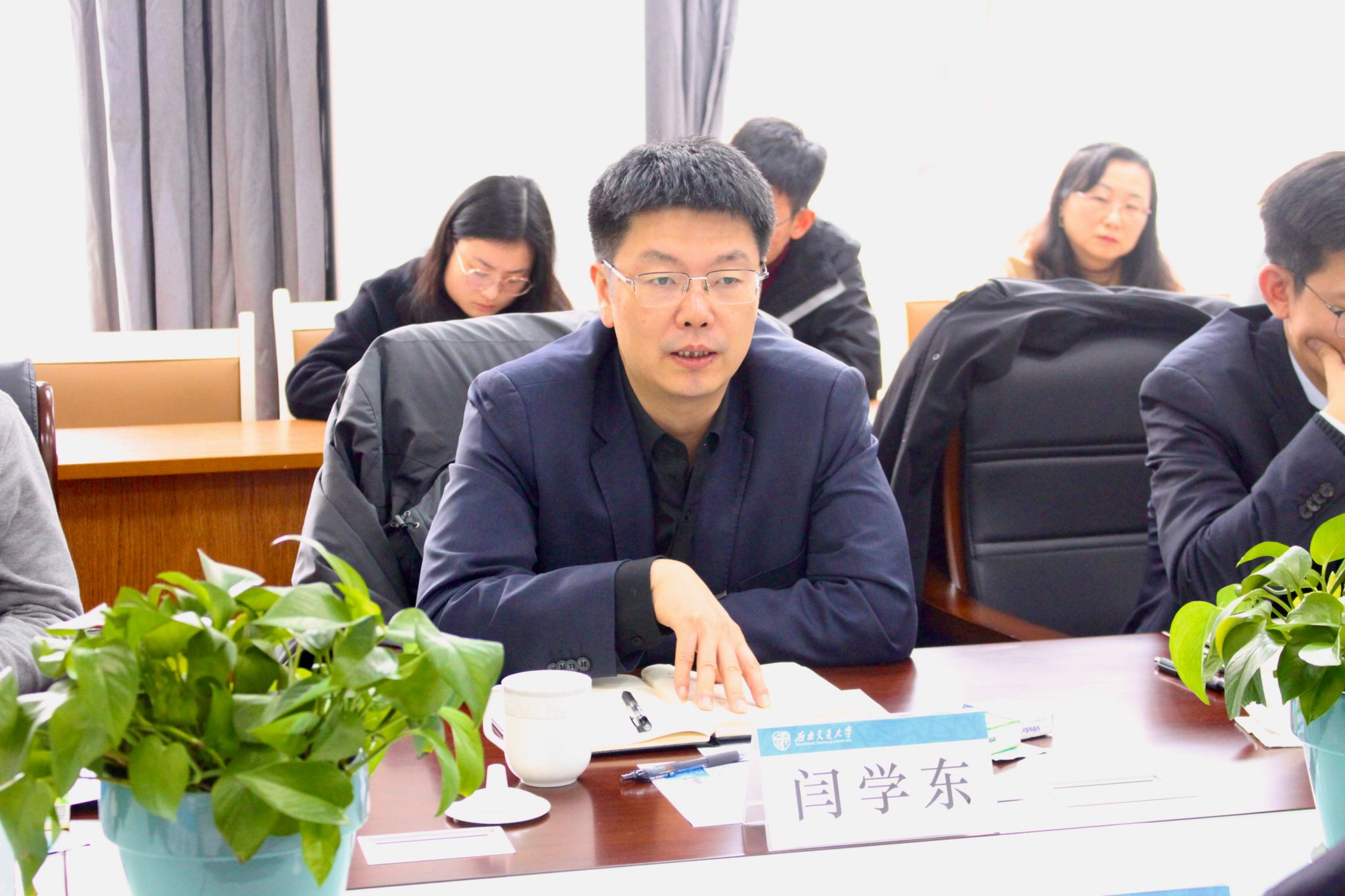 在听取学院工作报告后,闫学东校长作总结讲话。他充分肯定了学院的办学底蕴和成绩,表示学院基础工作扎实,科研教学体系完备。同时,他对学院下阶段发展提出了殷切期望:一是抓机遇,紧密对接国家重大战略和行业产业发展需求;二是明方向,进一步凝练办学特色;三是抢人才,着力引进及培养高质量青年人才;四是展成果,致力促进高水平研究成果产出;五是守底线,大力提升实验室安全管理水平,筑牢实验室安全防线;六是建平台,集中办学资源,提升科研教学质量;七是强合作,推动交叉学科、相近学科融合发展。