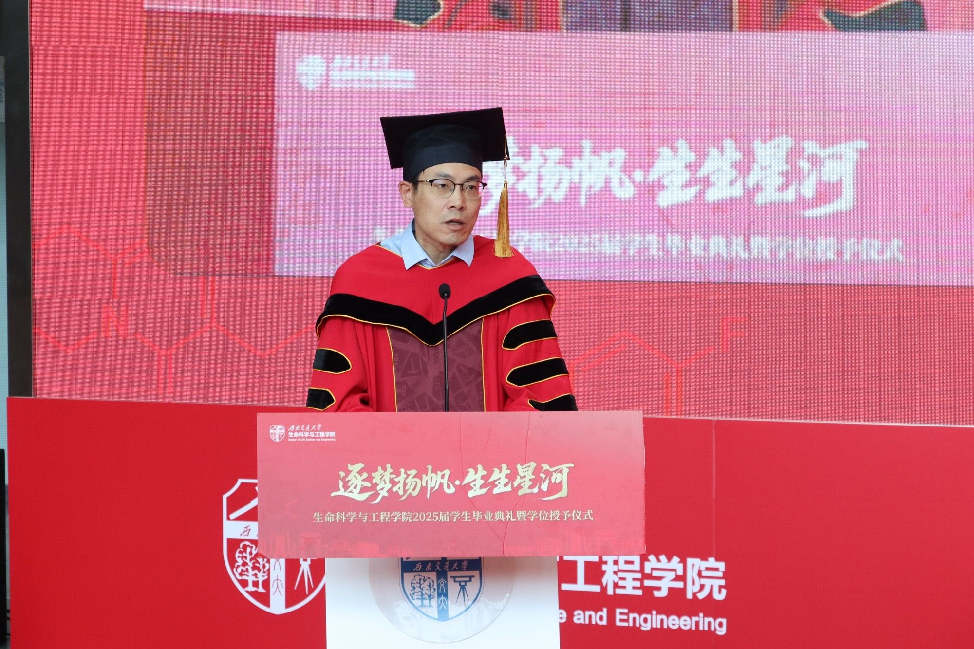 典礼在精彩的歌曲串烧表演中落下帷幕。学院办学25年来,已培养毕业生5000余名,为生命健康领域输送了大批优秀人才,本届毕业生中也涌现出多位学术新秀和创业先锋。“扬帆起航正当时,砥砺奋进新时代”,在《一路生花》的旋律中,2025届生命学子即将踏上新征程,他们必将以实际行动诠释交大学子的责任与担当,在实现中华民族伟大复兴的新征程中书写属于新时代生命人的精彩华章。
