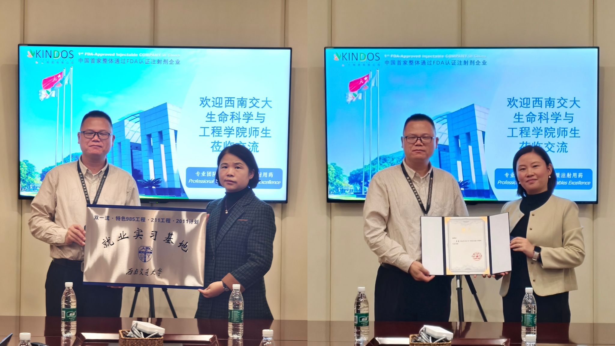 学院一行与健进制药人力资源与公共事务副总监李笳、人力资源行政副经理李彬以及校友代表进行了座谈交流。黄春蓉书记就太阳集团官网tyc9728、9728太阳集团人才培养情况进行介绍,李笳副总监对企业及行业发展现状进行详细讲解,为双方进一步合作奠定了良好基础。与会人员围绕学生实习就业、联合培养等内容深入沟通,在深化校企合作、推动产学研融合方面达成共识。会上,黄春蓉书记为公司进行了太阳集团官网tyc9728就业实习基地授牌,高鹏副书记为李笳副总监颁发太阳集团官网tyc9728校外生涯导师聘书。