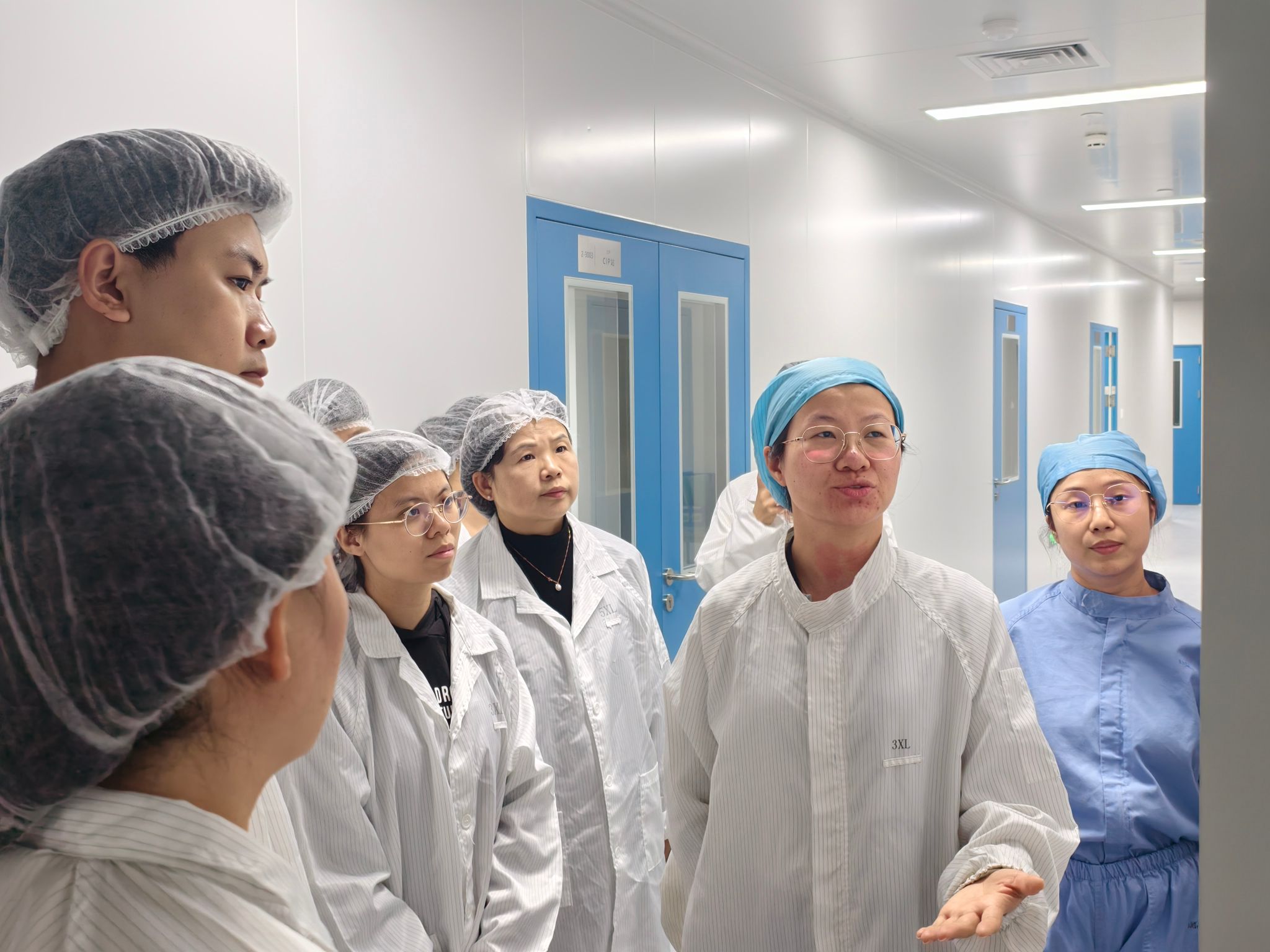 在健进制药人力资源与公共事务副总监李笳及生命学院校友代表的陪同下,学院师生参观了公司重组蛋白与抗体药物中试及产业化平台、原液生产车间与FDA零缺陷认证药品研发实验室。各业务负责人围绕药品研发与生产全流程作了系统讲解,帮助同学们深入了解从实验室研究到产业化生产的转化过程,切实认识到专业理论与实际操作相结合的重要性。