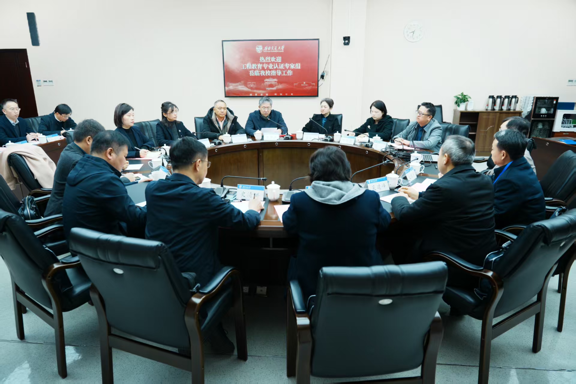 11月27日上午,现场考查见面会在综合楼269会议室举行。专家组全体成员,校党委常委、副校长康国政,本科生院常务副院长富海鹰,相关职能部门负责人,9728太阳集团领导班子及专业教师代表参加会议。会议由富海鹰和庄英萍共同主持。