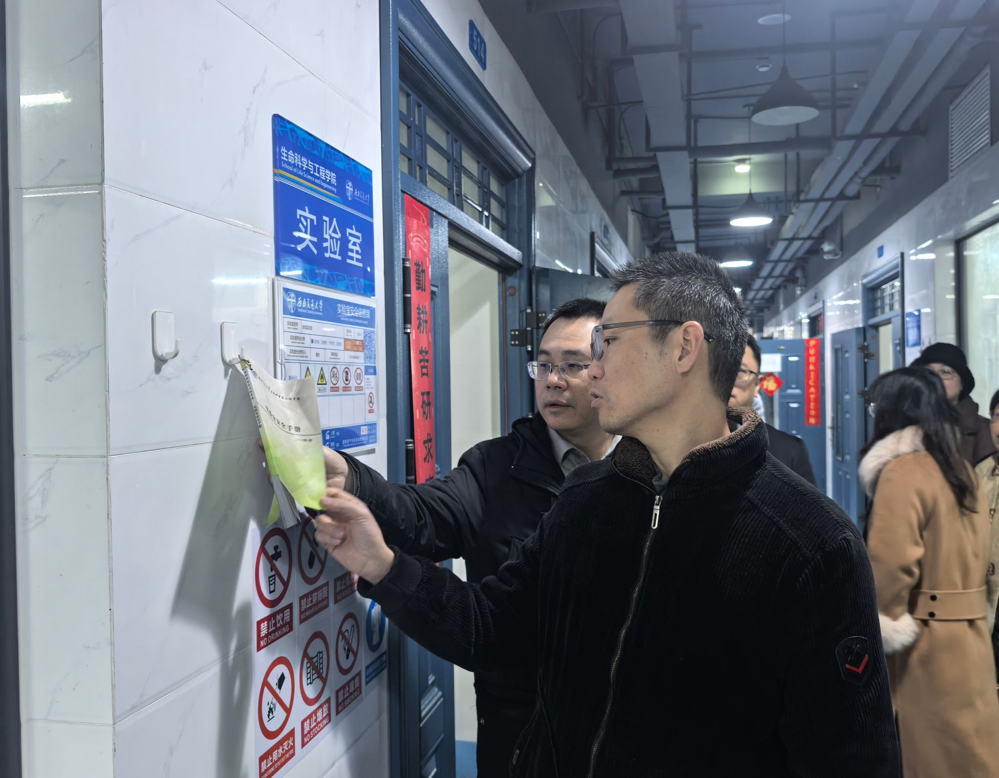 为进一步推动党建与业务工作深度融合,提升实验室安全管理的规范化、科学化水平,营造安全稳定的教学科研环境,由生命学院机关与实验中心党支部和医学院机关党支部联合举办的“共话实验安全,护航科研之路”实验室安全工作经验交流会暨实验室安全联合检查活动于2025年12月29日上午在科技工业园顺利举行。医学院党委书记曾东红、实验教学主管郑晓彤,生命学院党委书记黄春蓉、副院长王毅分别带领两院实验室负责老师参加了本次活动。