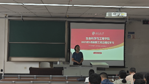 2025-10-109月25日下午,生命学院在九里校区4319会议室召开全体教职工大会暨政治理论学习。会议由学院党委书记黄春蓉主持,学院全体教职工参加了会议...